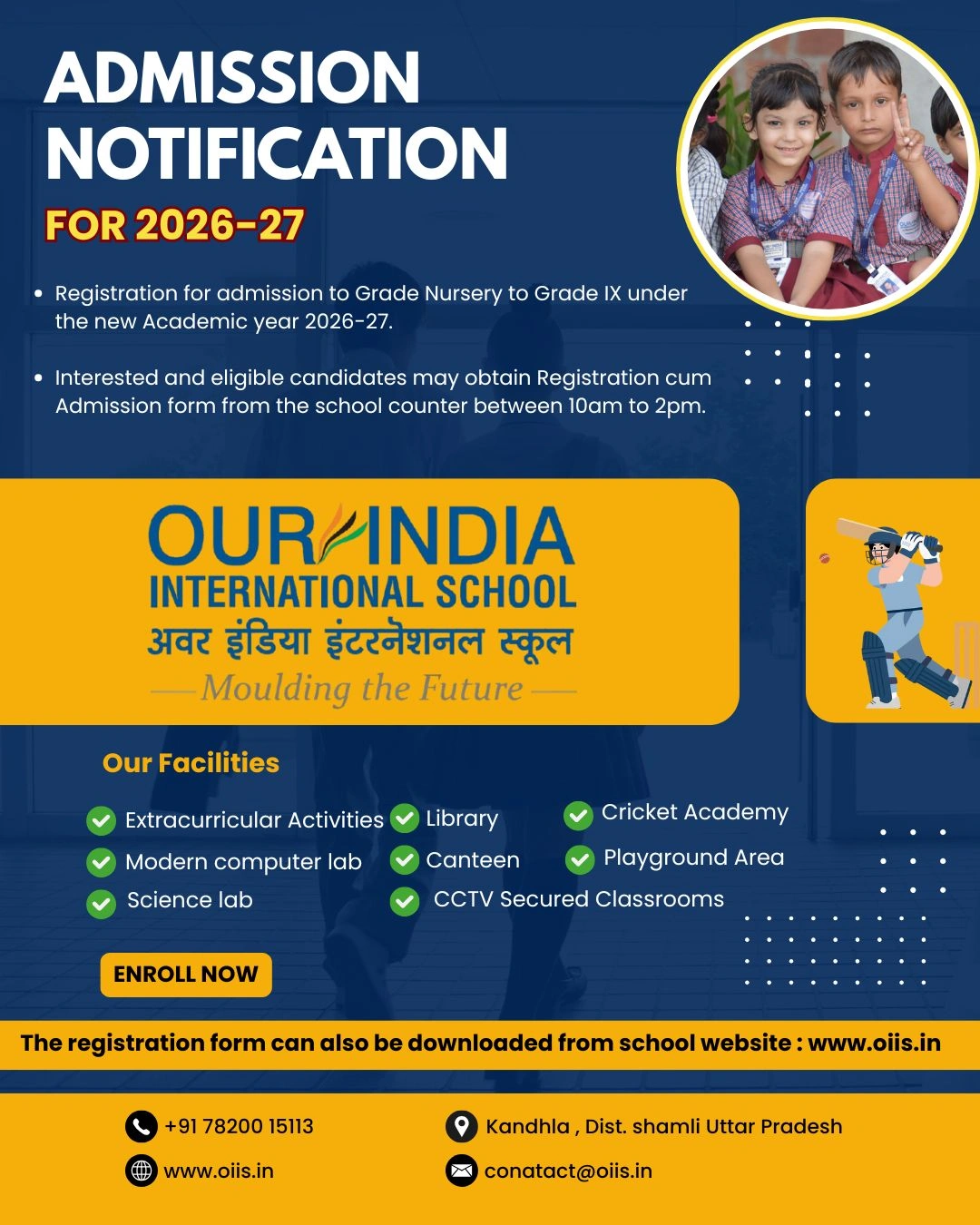 Nestled amidst the serene landscape of Kandhla, Our India International School, welcomes students from all backgrounds to a stimulating environment.